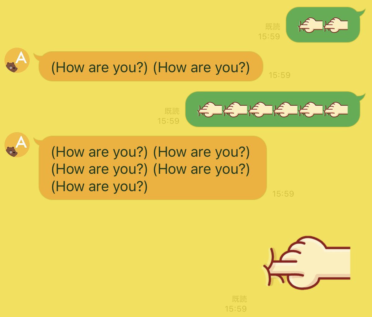 Lineの 肛門に指を入れてるみたいな絵文字 英訳すると How Are You となるのは何故 Twitterの力でその理由が明らかに Togetter
